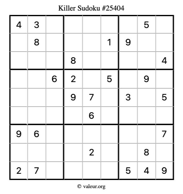 Here is our printable Killer Sudoku Puzzle #25404. You are welcome to print a copy for yourself and solve it the old-fashioned way with a pencil and an eraser!