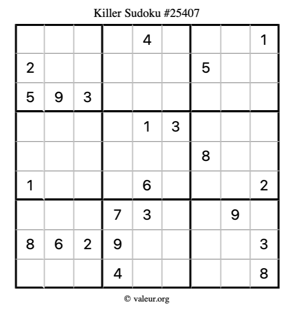 Here is our printable Killer Sudoku Puzzle #25407. You are welcome to print a copy for yourself and solve it the old-fashioned way with a pencil and an eraser!