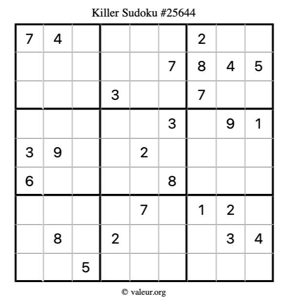 Here is our printable Killer Sudoku Puzzle #25644. You are welcome to print a copy for yourself and solve it the old-fashioned way with a pencil and an eraser!