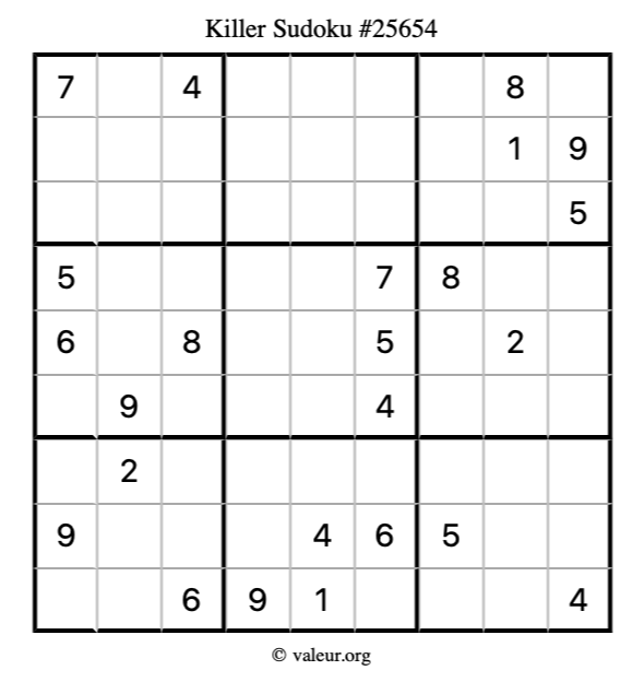 Killer Sudoku puzzle #25654 is not the only killer Sudoku puzzle in our database. We have thousands of killer Sudoku puzzles that you can print and solve. Check them out here!