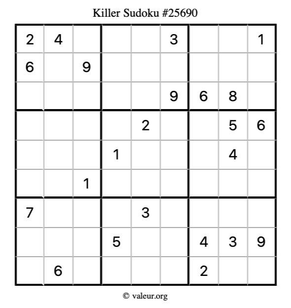 Killer Sudoku puzzle #25690 is not the only killer Sudoku puzzle in our database. We have thousands of killer Sudoku puzzles that you can print and solve. Check them out here!